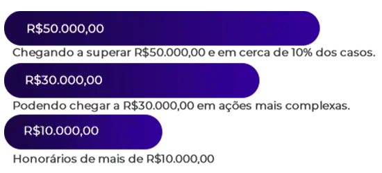 Os ganhos podem variar, mas em ações mais complexas, os honorários frequentemente ultrapassam R$30.000,00, chegando a superar R$50.000,00 em cerca de 10% dos casos.